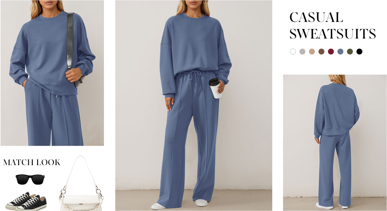 • STYLISH FEATURES: Crewneck Sweatshirts Women; Sweatsuits For Women; Track Suits For Women Set; Sweatpants Women Baggy; Long Sleeve Top; Two Piece Sets For Women Fall; Womens Matching Sets; Wide Leg Pants Woman; Womens Knit Set; Lounge Sets For Women