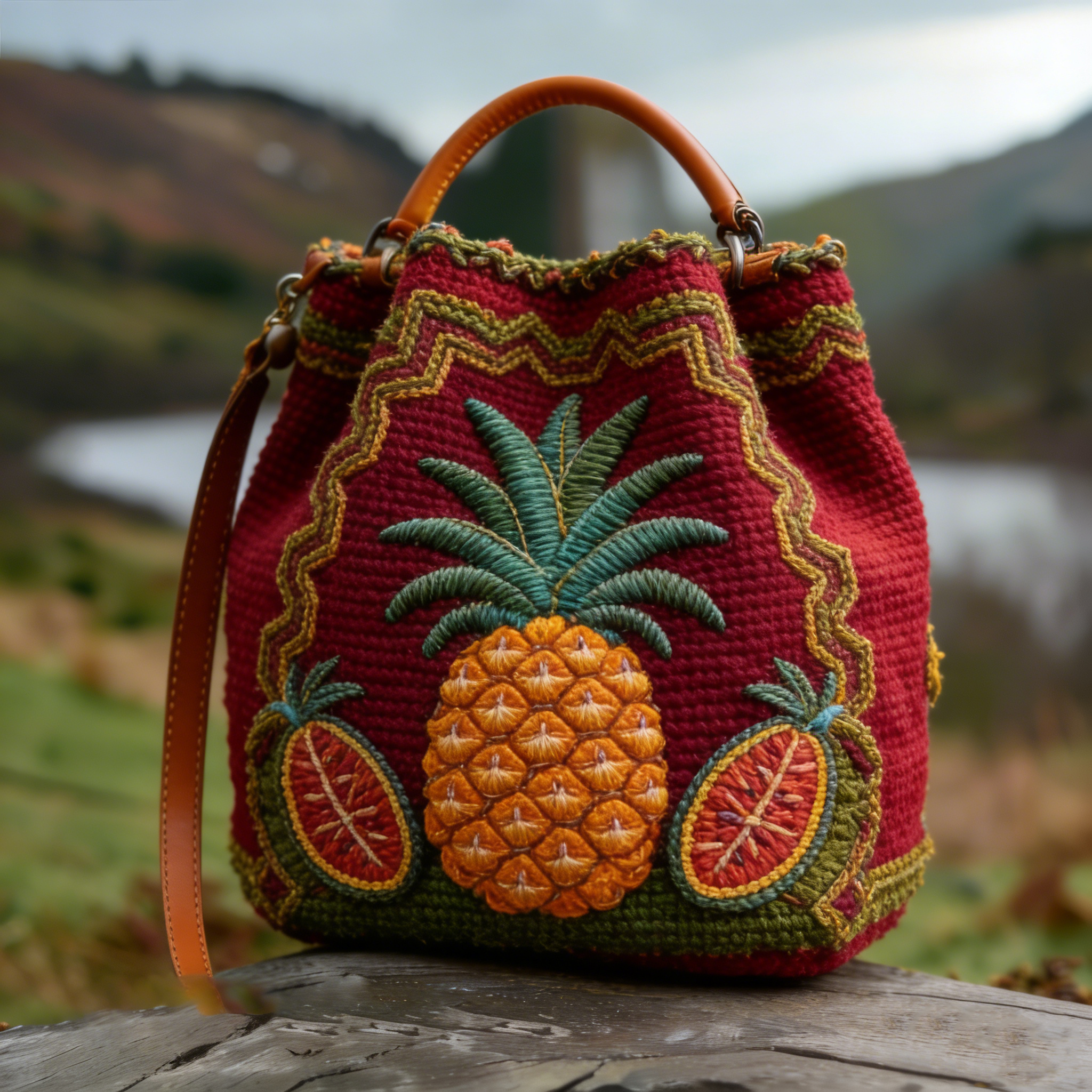 Red Pineapple Pattern Woven Crossbody Carrying Bucket Bag