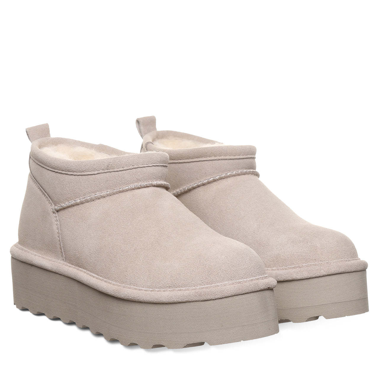An even shorter take on our quintessential Retro Shorty boots, these classic suede ankle boots offer the best of both worlds: retro-chic nostalgia and supreme comfort! Your feet will enjoy the cozy wool blend lining, no matter the weather. The platform and cropped height give these boots a cute, modern feel �� perfect for casual off-duty exploration or elevating your loungewear looks.