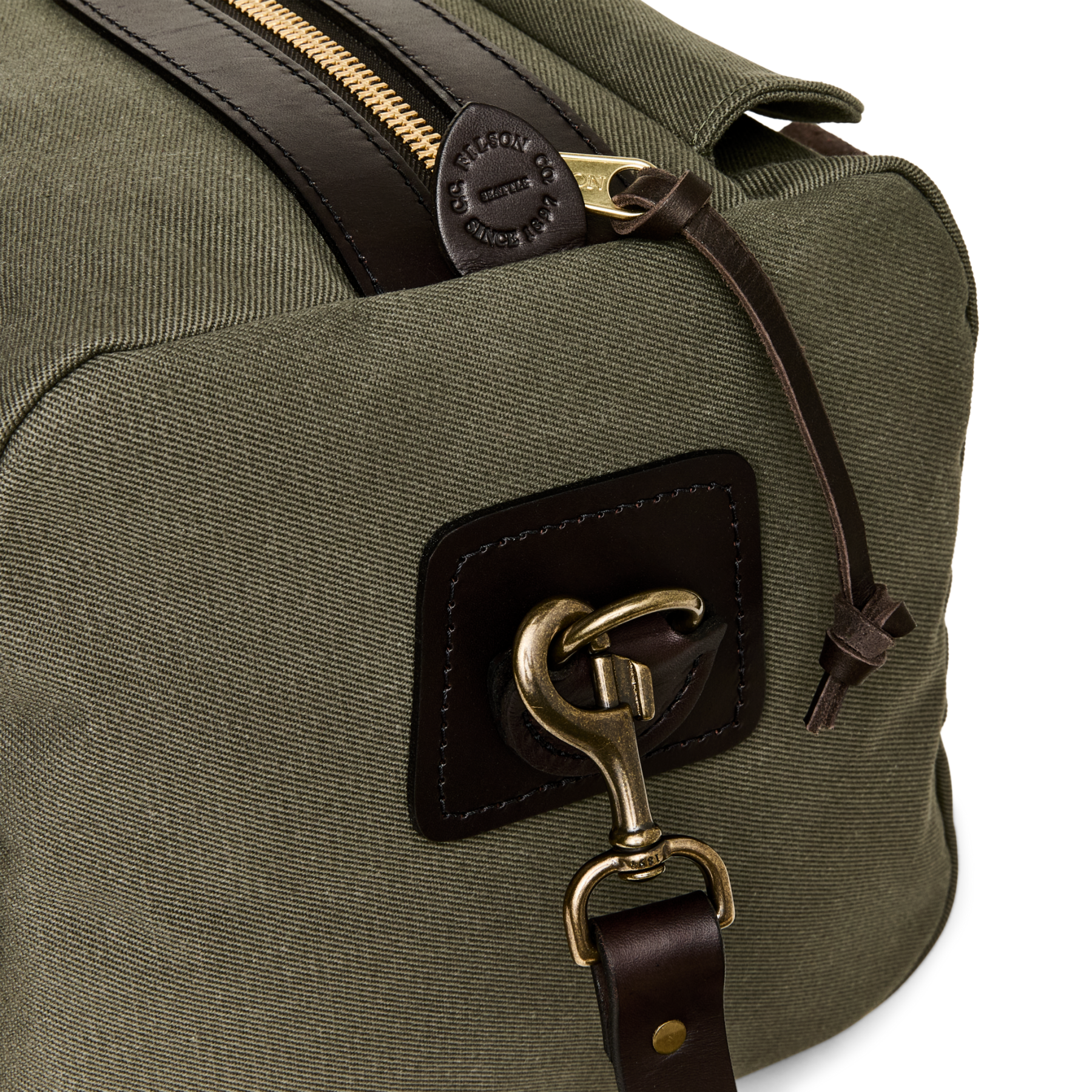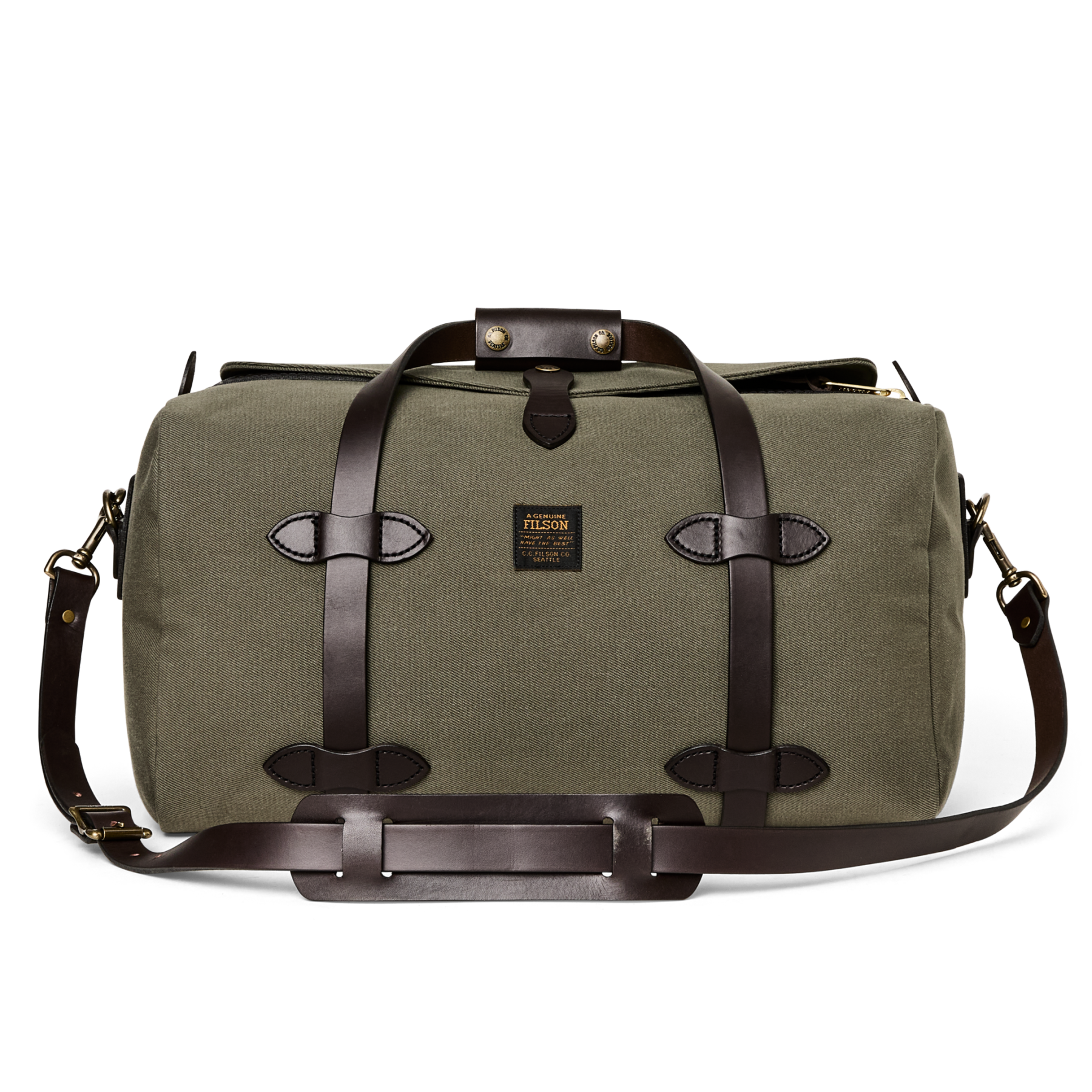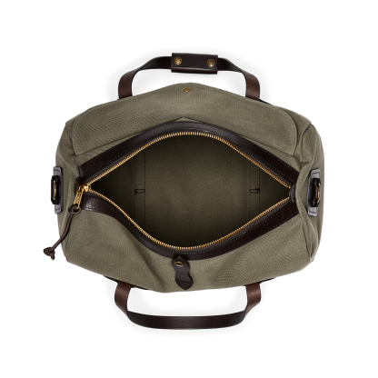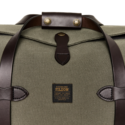 Our Rugged Twill Duffle Bags embody the philosophy that's guided Filson since 1897, making products that are handed down rather than tossed out. The bag is made from Rugged Twill, an industrial-strength canvas from Britain's most storied mills that is lightly waxed for water resistance. The durable Bridle Leather for the handles is strong enough for horse tack and wraps completely under the bag to cradle the heaviest loads. The solid brass zipper from YKK? is rustproof for a lifetime of dependable service. Tin Cloth canvas binding on interior seams prevents fraying and wear. Each interior endcap features a stow pocket for organizing smaller essentials and the Bridle Leather shoulder strap is detachable for hand carry. Custom sand-cast brass hardware.