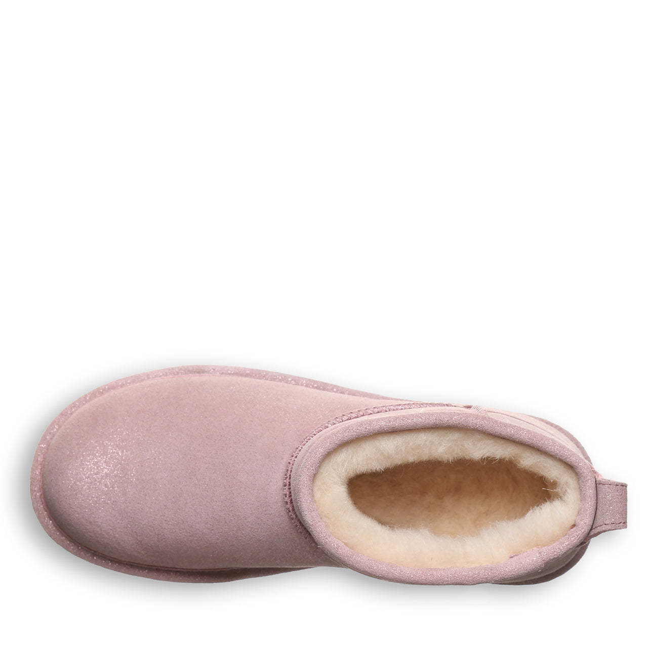 Shine bright with the Sparkle Shorty Boot. Crafted from soft, natural suede with a shimmering glittery metallic finish, this cozy ankle boot adds a touch of glam to your everyday style. Lined with plush wool blend and set on a durable, lightweight sole, it keeps you warm and comfortable from morning coffee runs to evening strolls.