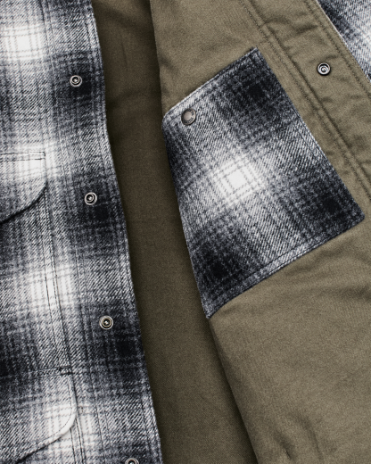 This insulated Cruiser brings three layers of warmth into one jacket. The shell is a midweight 8-oz. wool blend reinforced with nylon for lasting strength. Inside, lightweight polyester insulation holds heat without bulk. The torso is lined with our Alaskan Guide flannel--a brushed-cotton workhorse trusted by outdoorsmen for more than 30 years.