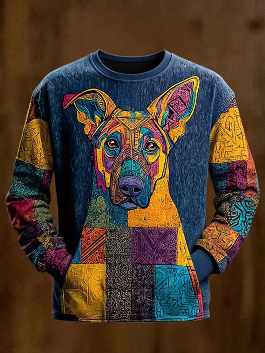 Vintage Patchwork Dog Art Print Casual Sweatshirt