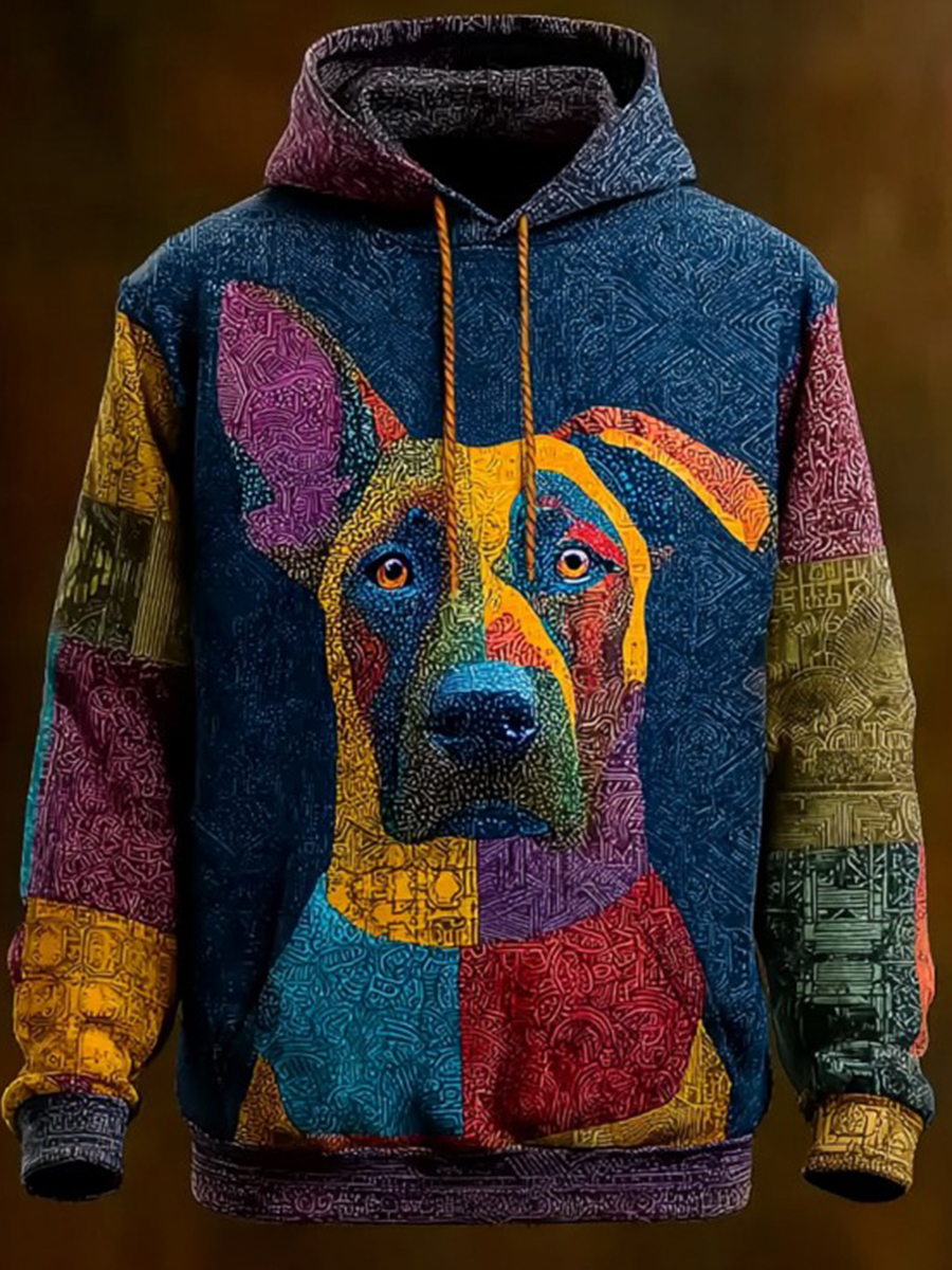 Vintage Patchwork Dog Print Art Casual Hoodie