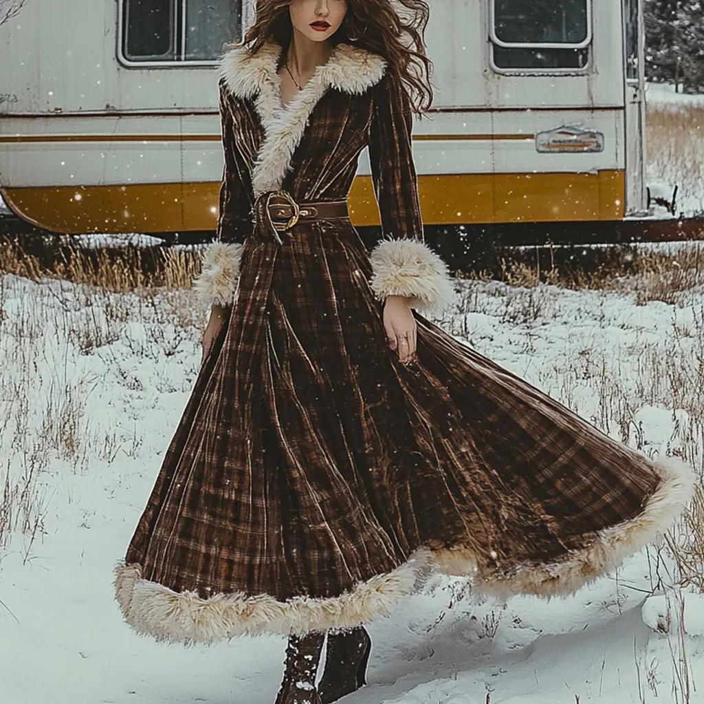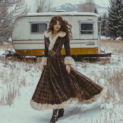 Western Classic Autumn And Winter Velvet Warm Plush Retro Long Sleeve Temperament Dress