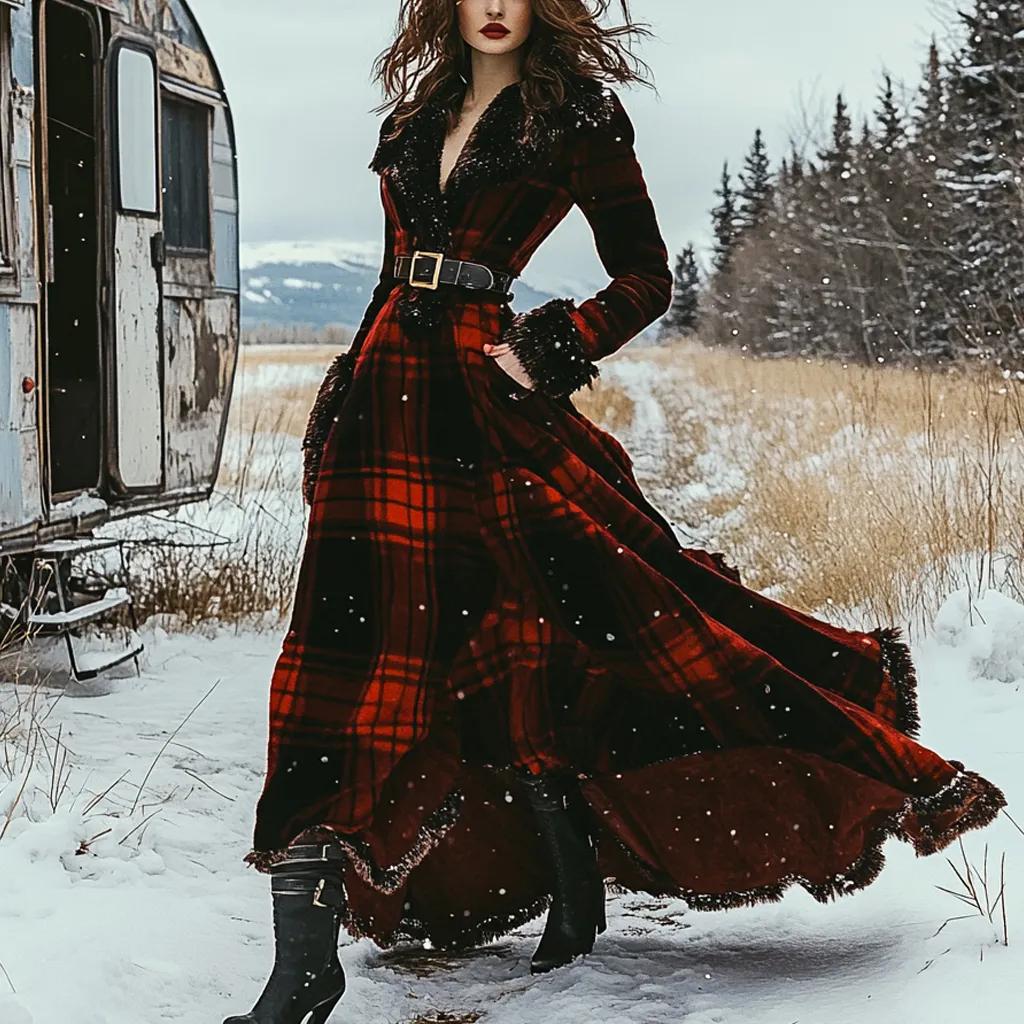 Western Classic Autumn And Winter Velvet Warm Plush Retro Long Sleeve Temperament Dress