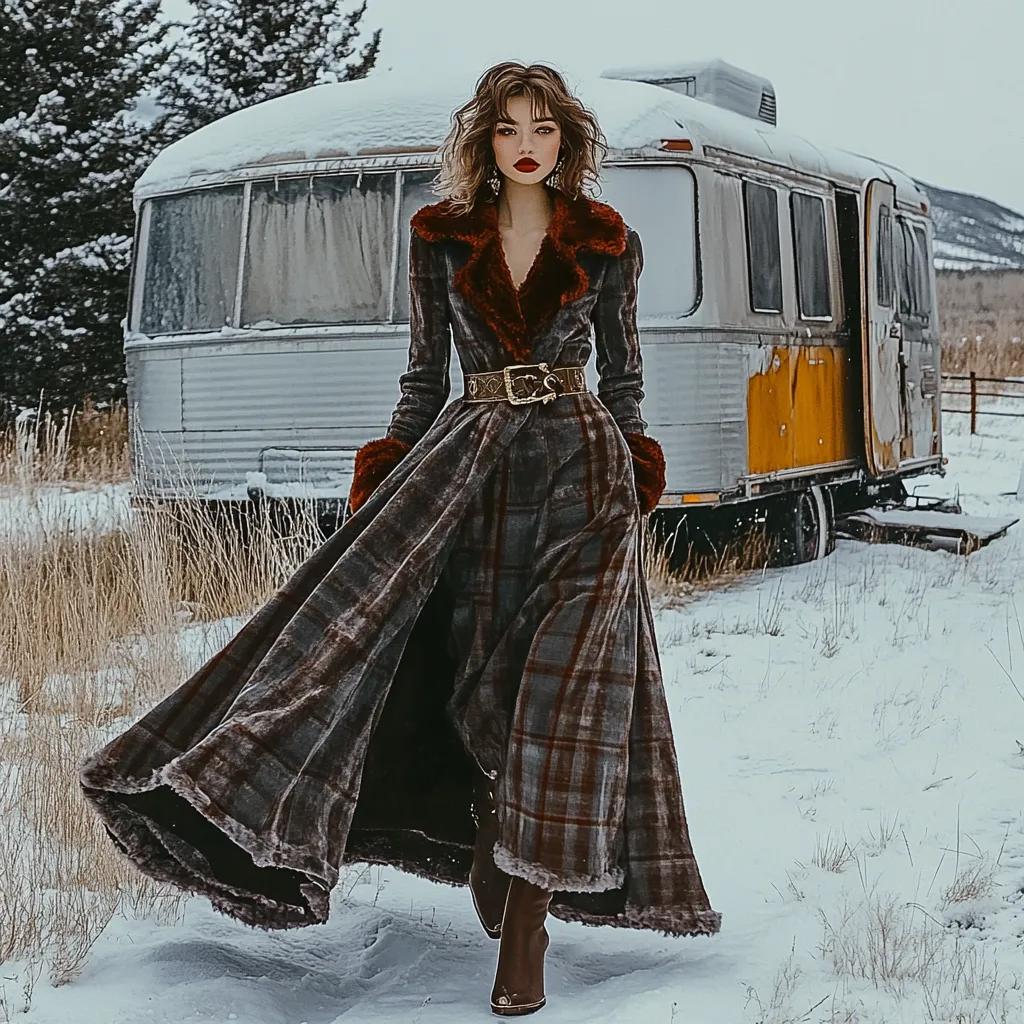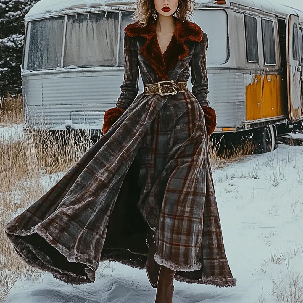 Western Classic Autumn And Winter Velvet Warm Plush Retro Long Sleeve Temperament Dress