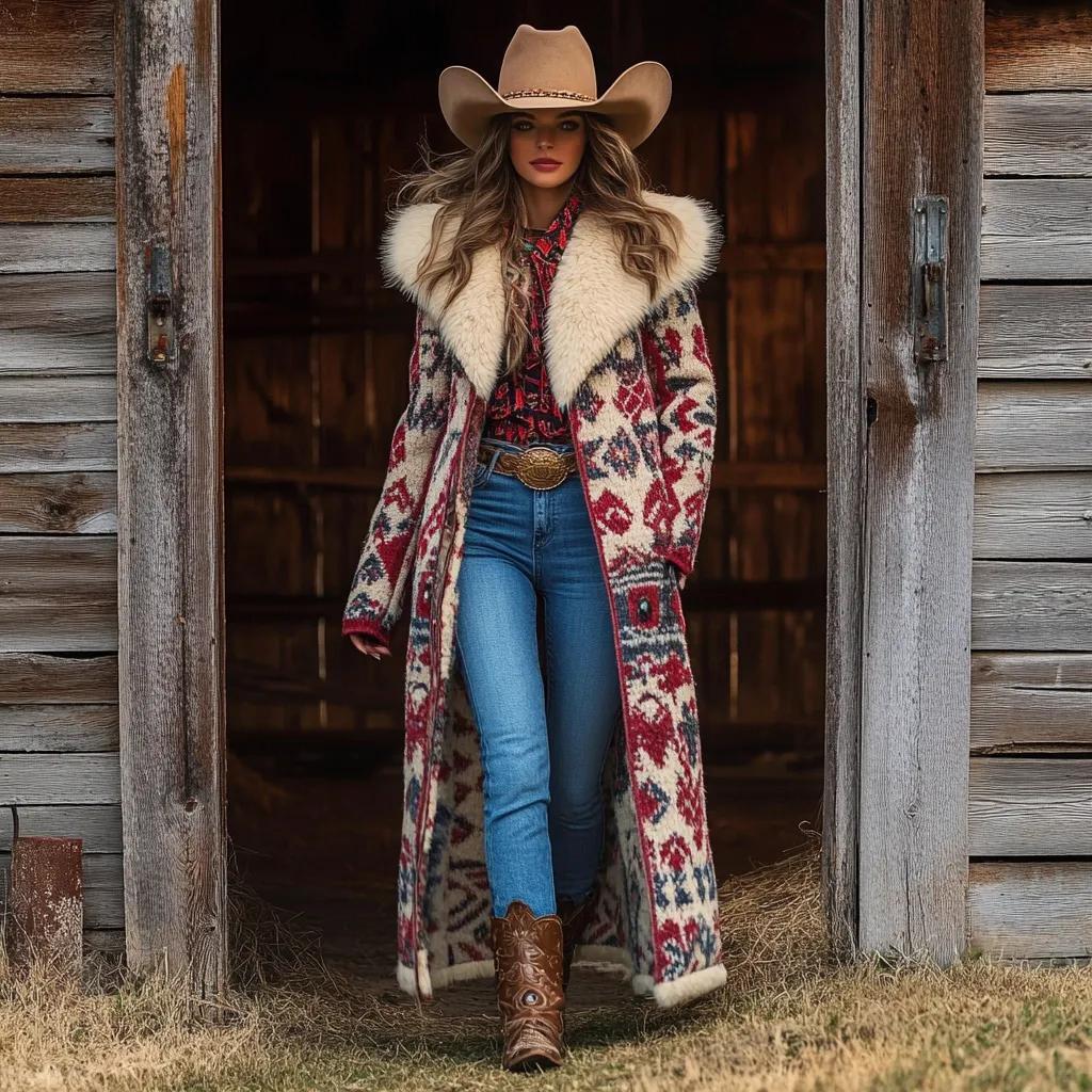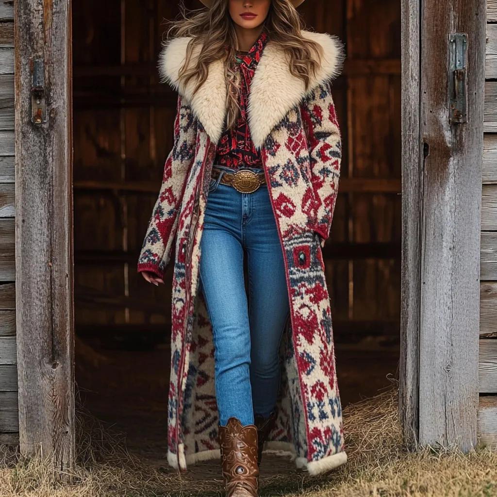Western Retro Style Women's Aztec Print Coat Plush Autumn And Winter Warm Coat