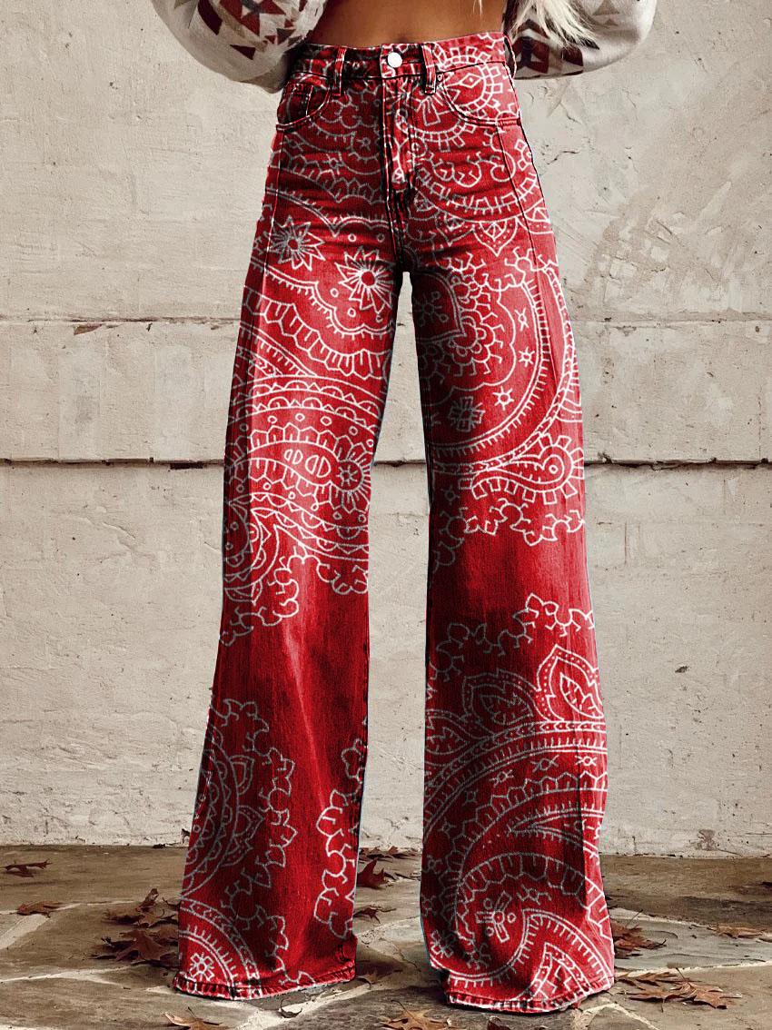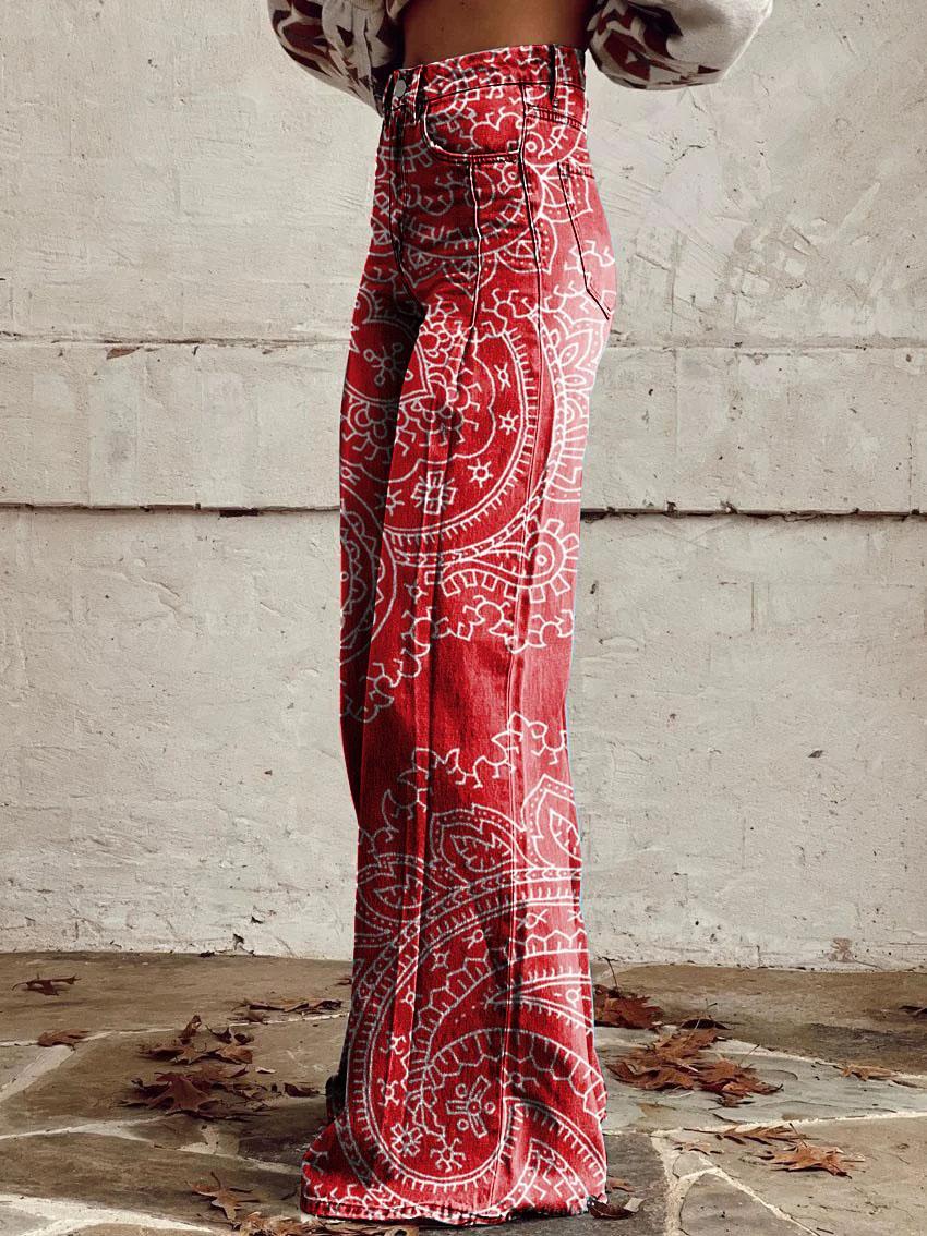 Women's Bohemian Paisley Print Casual Wide Leg Pants
