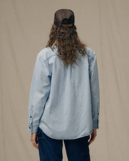 Our Denim Work Shirt can double as a thick, heavy shirt or an overshirt. It is made with premium 11-oz. denim, a classic workwear fabric for ranchers and vintage miners. This fabric has durability for hard work and decades of reliable service. The collar is lined with contrasting cotton corduroy for distinctive flair and next-to-skin comfort. Custom buttons secure the front closure, cuffs, and chest-pocket flaps.