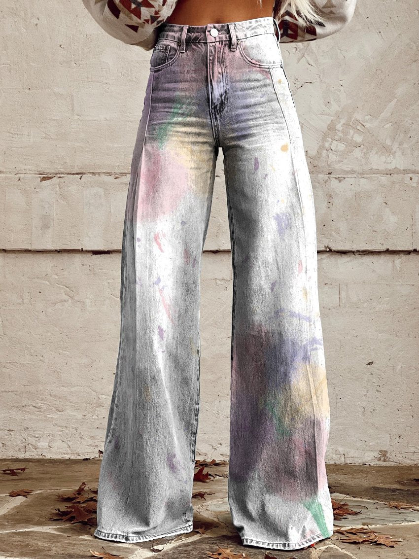 Women's Smudge Pattern Print Casual Wide Leg Pants