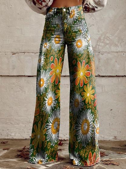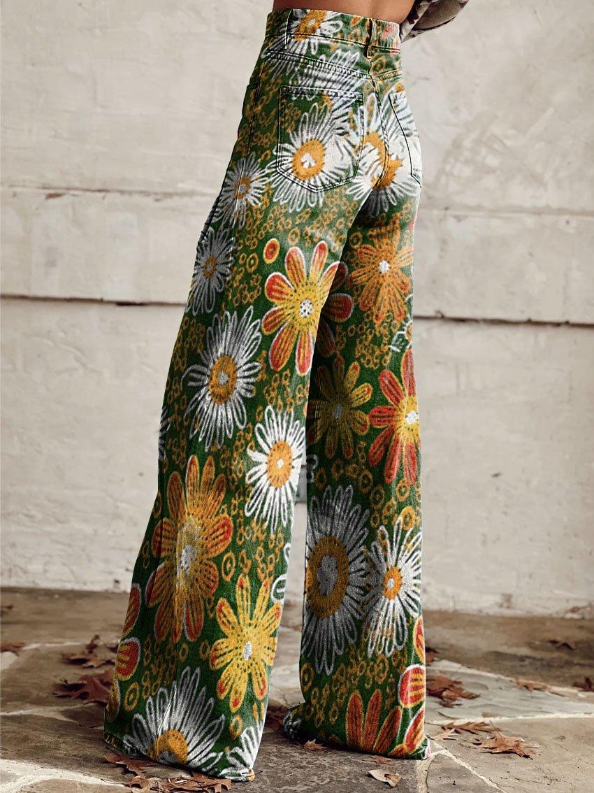 Women's Vintage Flower Daisy Print Casual Wide Leg Pants